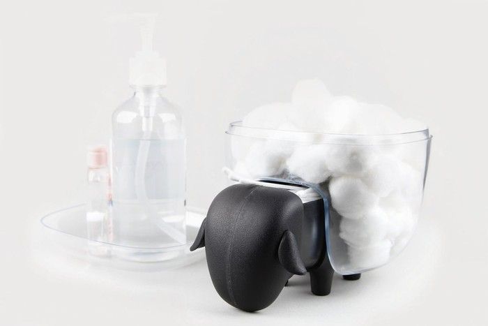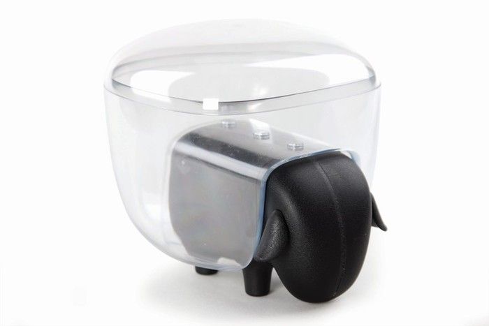 Wattenhouder - Sheep Cotton Box QUALY - 16x19.4x15.5cm - Zwart/Clear