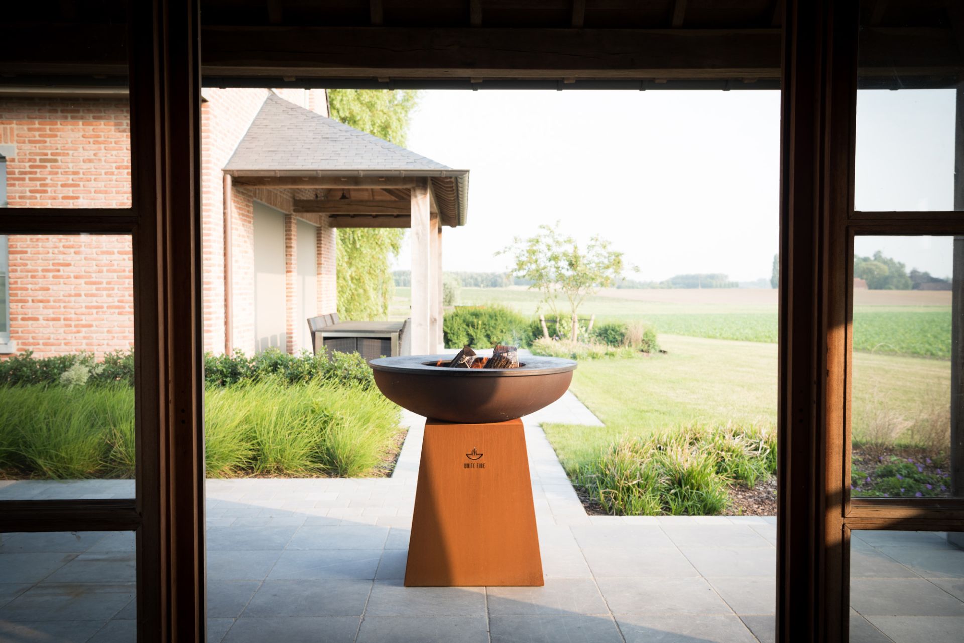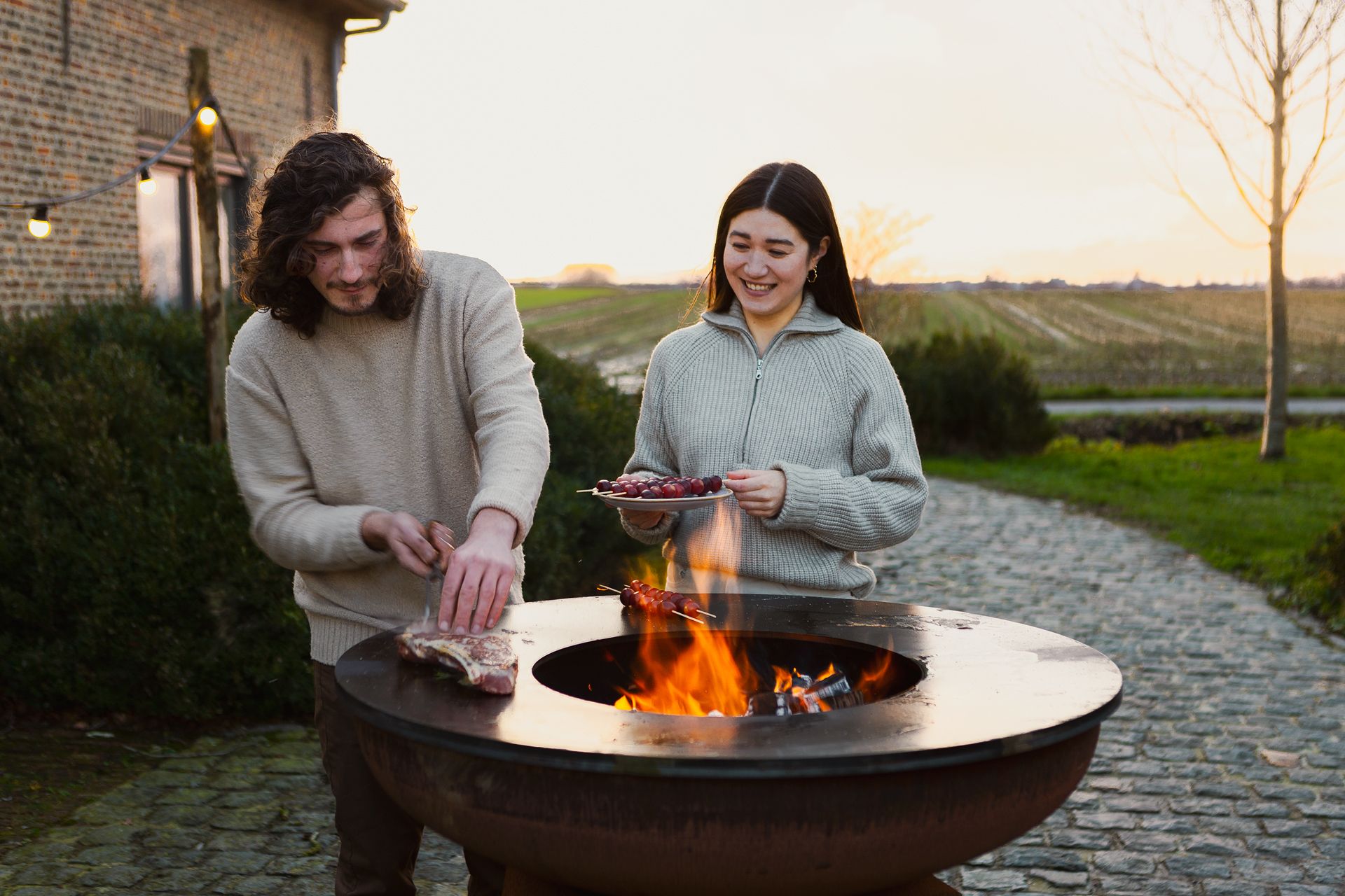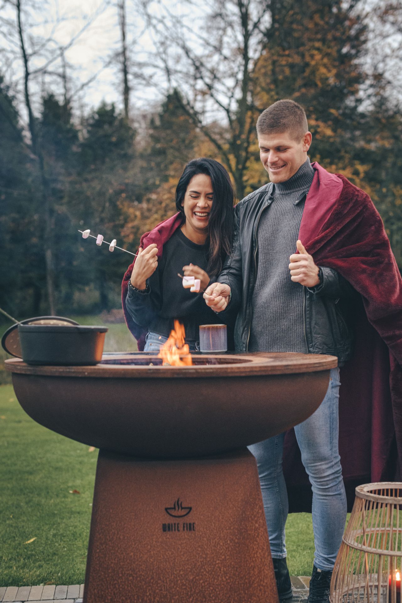 Koken en grillen in de buitenlucht krijgt een totaal andere invulling met de White Fire vuurschaal die je ook als BBQ kunt gebruiken.