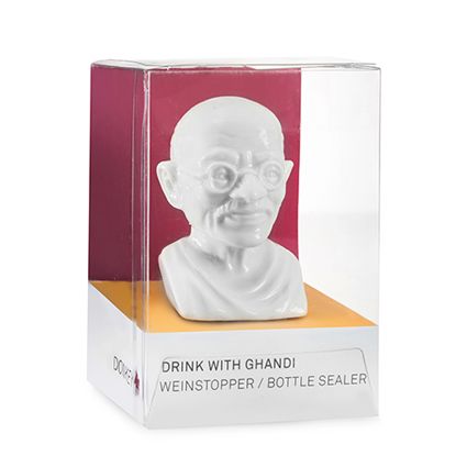 Wijnstop - Drink with Gandhi - 8.5x4cm Donkey - Porselein/Kurk - handgemaakt