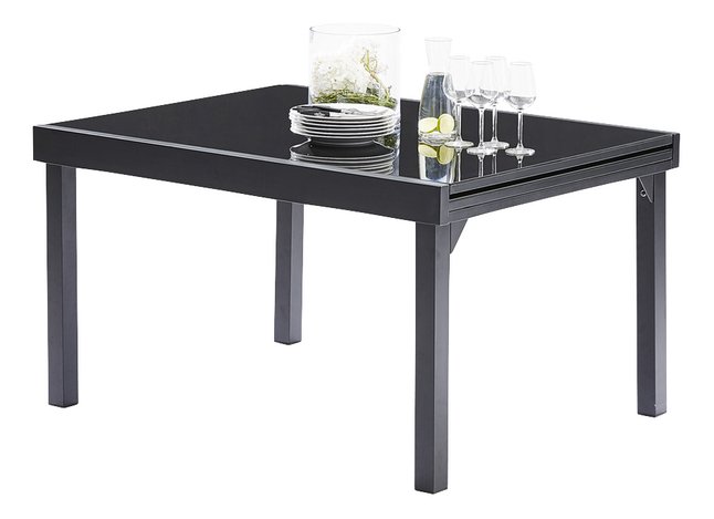 Wilsa Tuintafel Modulo Alu/Glas Zwart Uitschuifbaar 76x105x135/270 cm