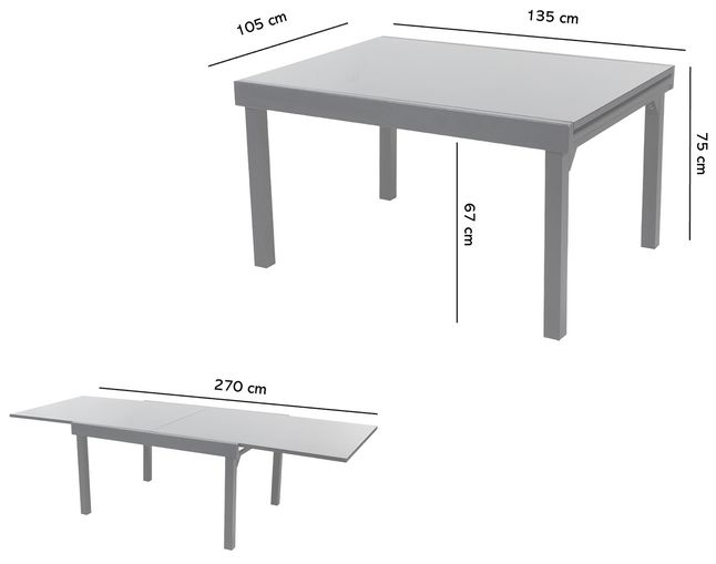 Afmetingen: met zijn royale afmetingen (l 135 x h 75 cm) kan deze tafel gemakkelijk veel gasten ontvangen. Het gewicht van 43 kg getuigt van zijn stevigheid en stabiliteit.materiaal: de modulo tuintafel heeft een aluminium structuur waardoor hij goed bestand is tegen slecht weer en een lange levensduur heeft. Het blad van gehard glas geeft hem een extra vleugje elegantie en garandeert tegelijkertijd onderhoudsgemak.