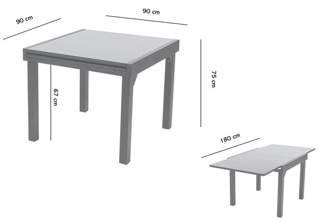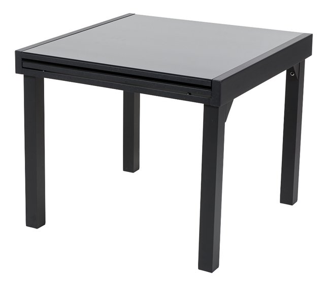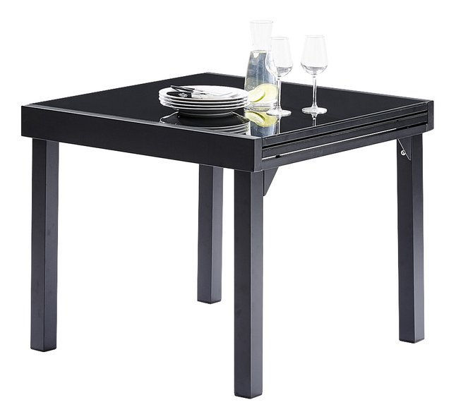 Wilsa Tuintafel Modulo Alu/Glas Zwart Uitschuifbaar 76x90x90/180 cm