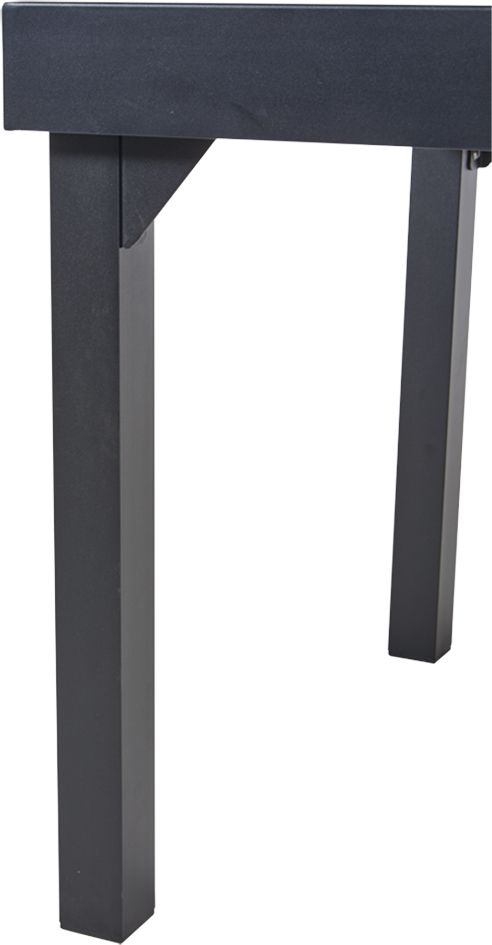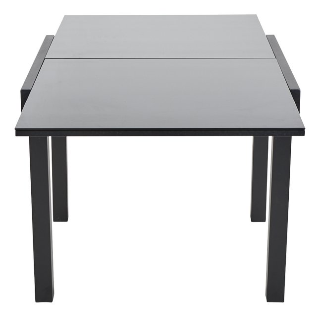Deze zwarte aluminium tafel is gemakkelijk inzetbaar en heeft verlengstukken waardoor u plaats biedt aan maximaal 8 gasten