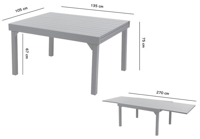 Een trendy tuintafel: de modulo tuintafel is een echte charmante aanwinst voor je buitenruimte. Met zijn verfijnde en elegante stijl belichaamt hij perfect de huidige trend. Deze tafel biedt plaats aan 6 tot 10 gasten, ideaal voor uw maaltijden met familie of vrienden.Productvoordelen: de modulo tuintafel is ontworpen voor uw grootste comfort. Hij is uitgerust met een verschuifbaar verlengstuk, waardoor u de grootte van de tafel eenvoudig kunt aanpassen aan het aantal gasten. Het aluminium ontwerp zorgt voor een grote weerstand tegen slecht weer.