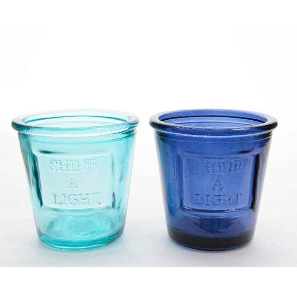 Windlicht Glas - 9X8.5 cm assorti Lichtblauw/Donkerblauw