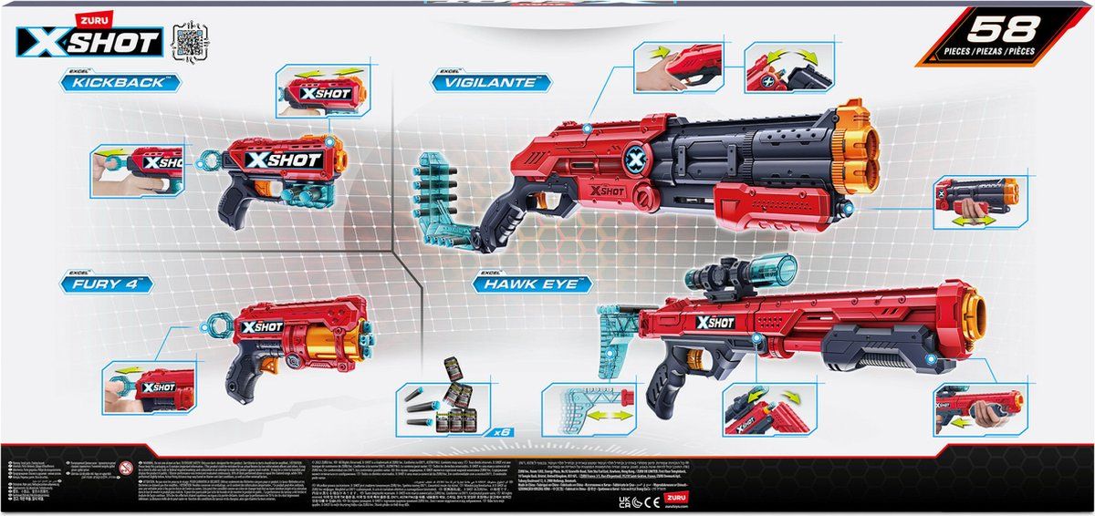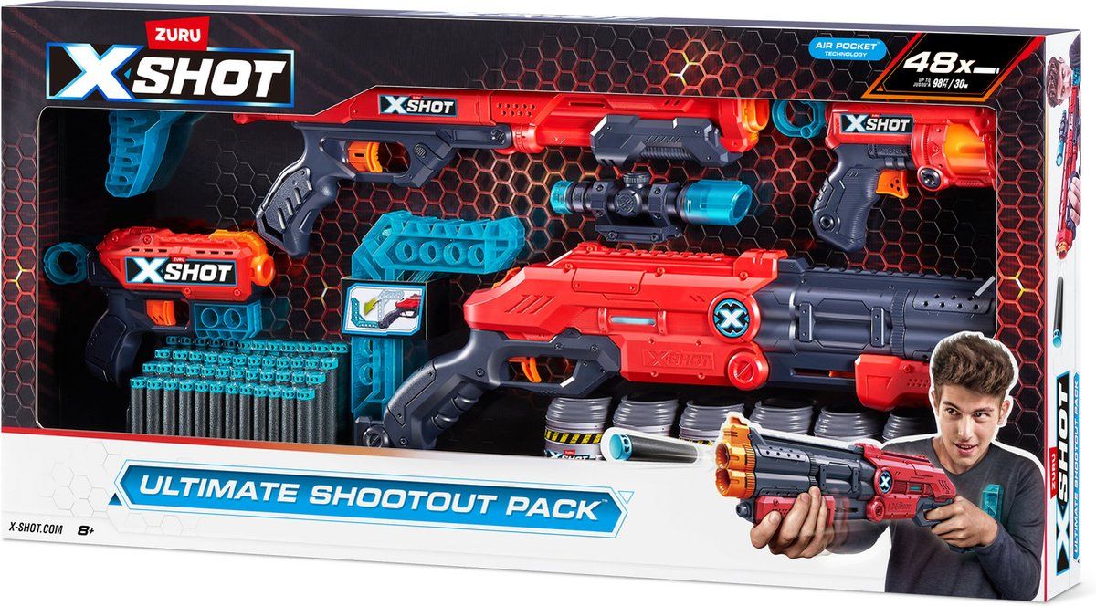 X-Shot, Ultimate Shootout Pack 4 Pistolen met pijltjes, 48 Pijlen