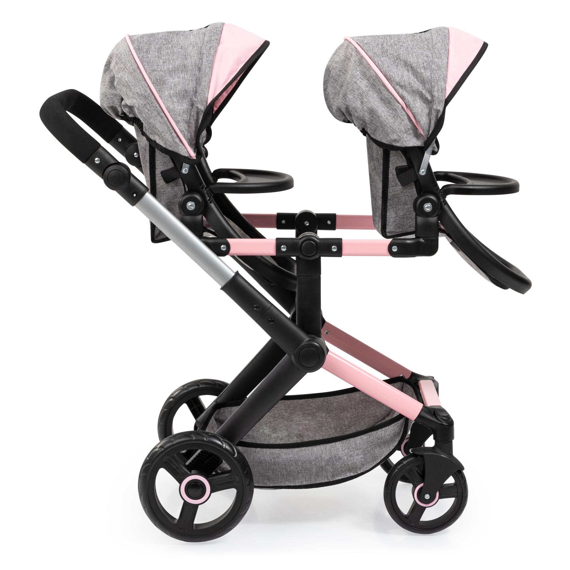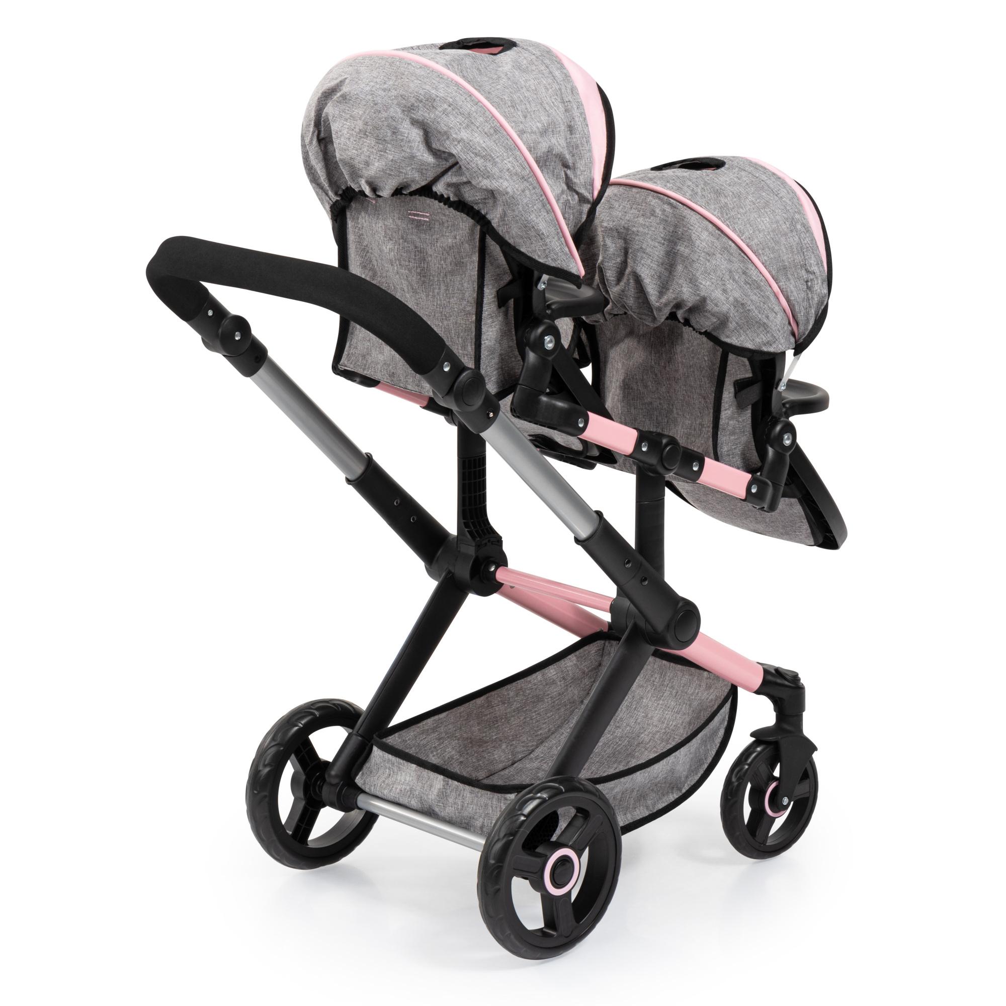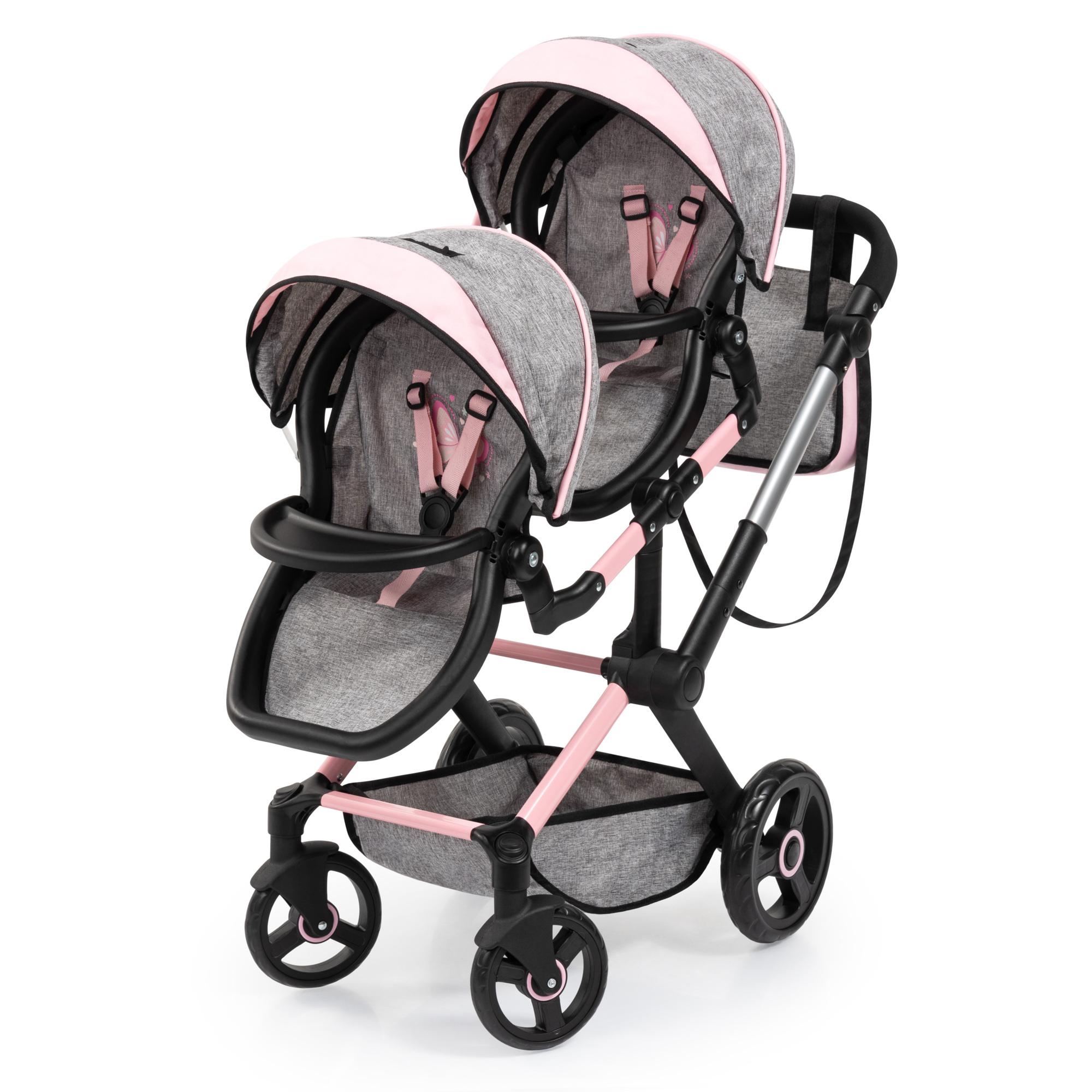 Xeo Twin, Tweelingpoppenwagen Grijs/Roze met vlinders