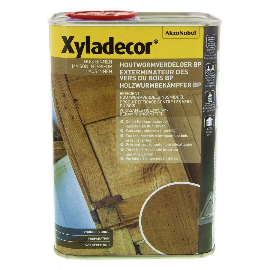 Kleurloos, solventgedragen product voor het behandelen van door insecten aangetast hout. Efficiënt houtwormverdelgingsmiddel. Doeltreffend tegen houtwormen. Preventief en curatief. *Gebruik biociden veilig. Lees vóór gebruik eerst het etiket en de productinformatie.