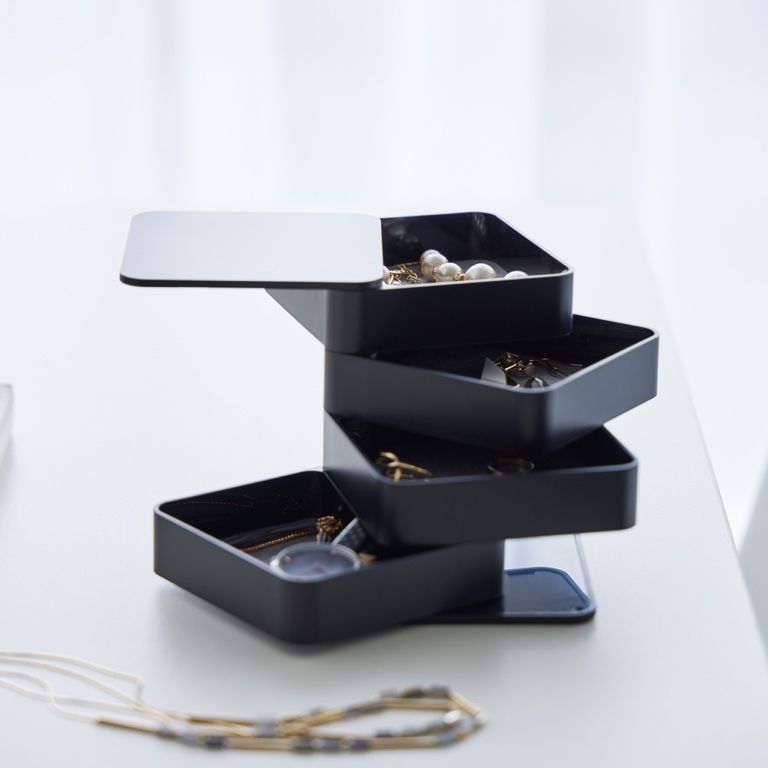 Yamazaki Juwelendoos Tower Black 9x9x10 cm - 4 Uitschuifbare Vakken