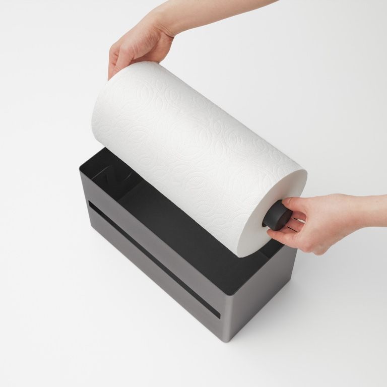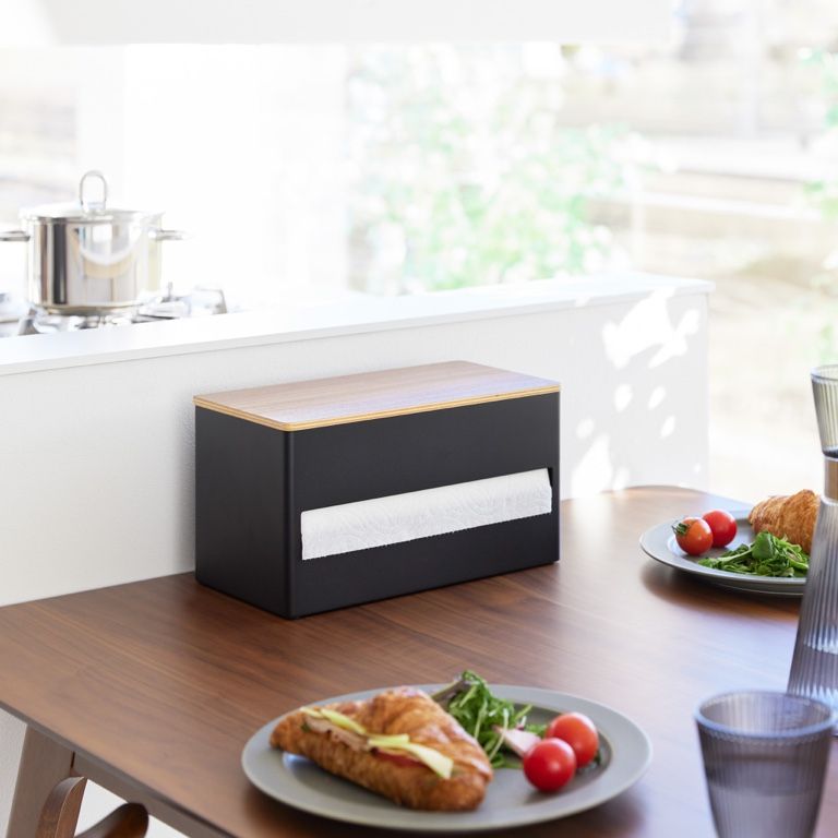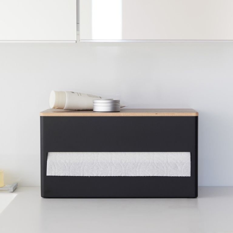 Yamazaki Keukenrolhouder Rin Black 31x16x17 cm - Staal - met Houten Deksel