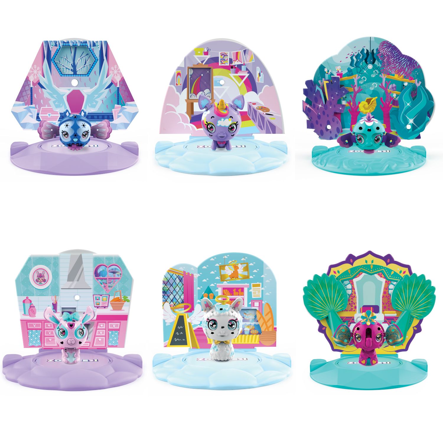 Ontdek personages zoals de doorschijnende Crystal Narwalal, Sparkelle, Kawaii Bunny met glitters, Hoppy Heartz, de neonkleurige Hip Hop Panda, Bam Bae en nog veel meer. De Happitat-achtergrond is perfect voor creatief rollenspel. Elke achtergrond past bij de stijl van je dier en heeft een ander beweegbaar 3D-element om als inspiratie voor je rollenspel te dienen. Draai om een schijnwerper te activeren, beweeg een föhn, wissel wat er in de oven wordt gebakken en nog veel meer. Voor nog meer speelmogelijkheden is geen Zoobles Animal compleet zonder de swingende en schattige Z-Girlz BFF. Zoek naar de bestie van je personage (elk afzonderlijk verkocht) en verbind hun Happitats om één grote speelruimte te creëren. Verzamel alle 12 Zoobles Animals en 12 Zoobles Z-Girlz (elk afzonderlijk verkocht) om je wonderbaarlijke Zoobles-wereld uit te breiden. Zoobles-speelgoedfiguren zijn de perfecte cadeaus voor kinderen vanaf 5 jaar.