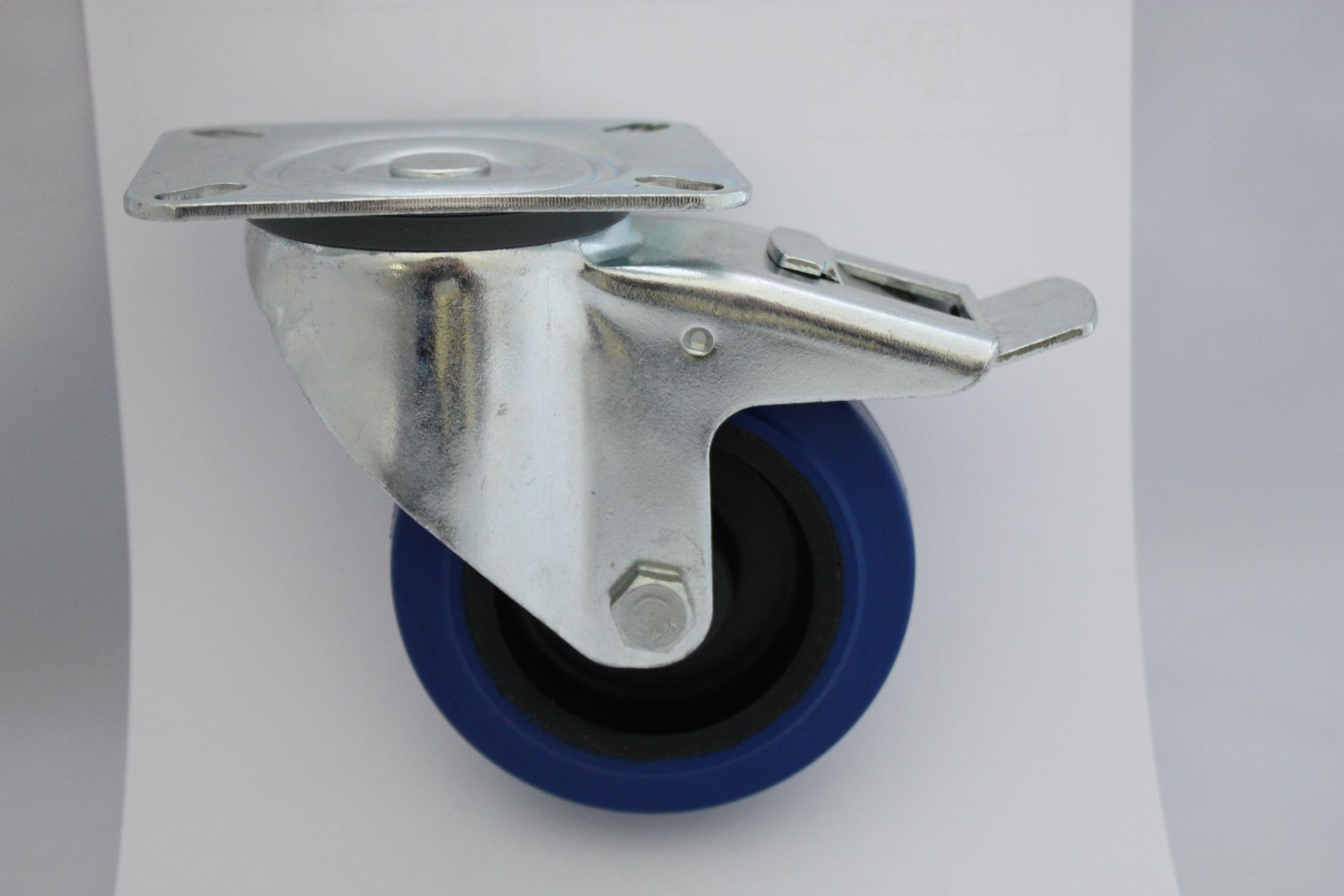 Zwenkwiel Blauw Diameter 125 mm met rem Opgevulcaniseerd Elastisch Rubber